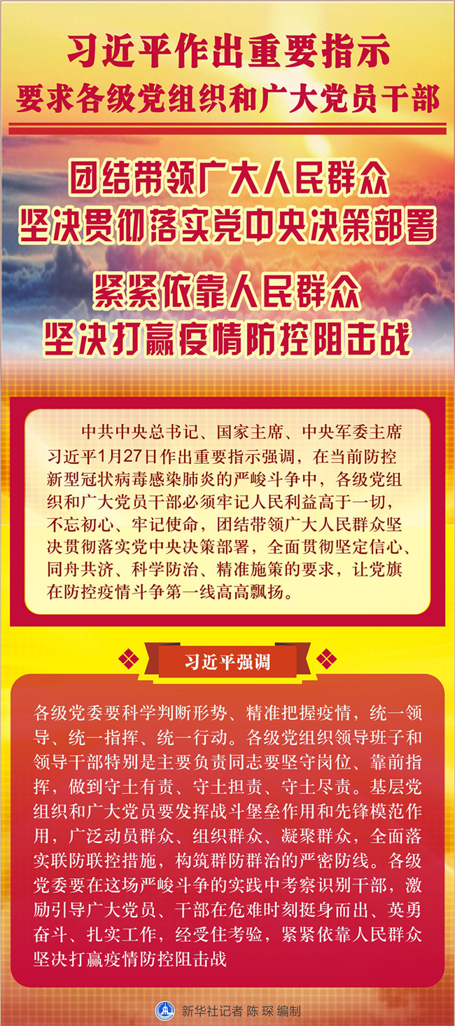 習(xí)近平作出重要指示要求各級黨組織和廣大黨員干部 團(tuán)結(jié)帶領(lǐng)廣大人民群眾堅(jiān)決貫徹落實(shí)黨中央決策部署 緊緊依靠人民群眾堅(jiān)決打贏疫情防控阻擊戰(zhàn)