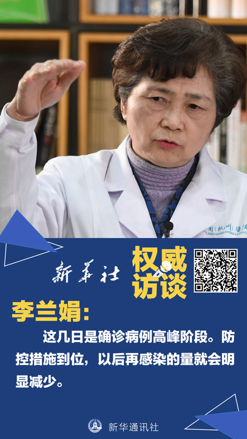 李蘭娟:之前為潛伏期的病人開始發(fā)病。早期武漢流到全國(guó)各地的病人以及留在武漢的病人都到了發(fā)病期,這是高峰來臨的一個(gè)階段,一點(diǎn)也不奇怪?,F(xiàn)在,發(fā)病的人我們隔離了,與他們有密切接觸的人員也調(diào)查出來、隔離起來,以后再感染的數(shù)量會(huì)明顯減少。武漢“封城”是非常英明的決策。正好趕上春節(jié)人口大流動(dòng),只有嚴(yán)格地把武漢控制起來,其他的地方才會(huì)減少發(fā)病率。