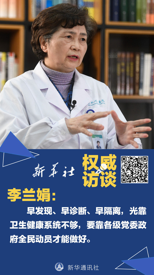 新型冠狀病毒感染的肺炎疫情每一天、每一點(diǎn)變化都牽動(dòng)人心。1月29日,“新華視點(diǎn)”記者專訪了中國(guó)工程院院士、國(guó)家衛(wèi)生健康委高級(jí)別專家組成員李蘭娟。她說,對(duì)傳染病思想上永遠(yuǎn)不能松懈。依靠各級(jí)黨委政府全民總動(dòng)員,依靠廣大專業(yè)的醫(yī)務(wù)人員,我們一定能勝利。