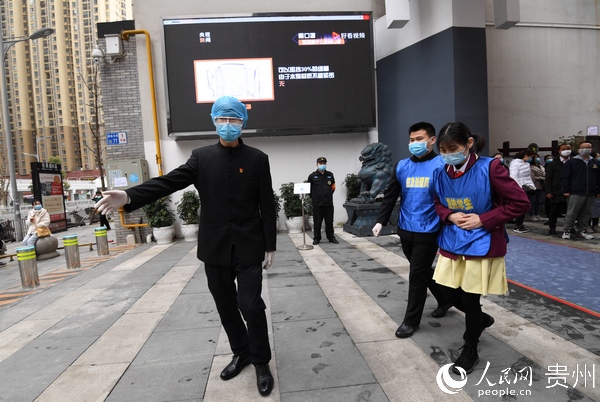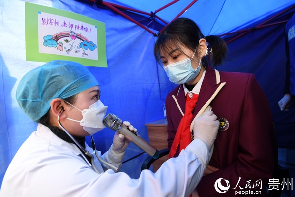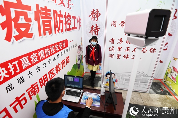 “學(xué)生進校之前,要對學(xué)生和全體教職員工建起一人一檔的健康檔案,了解學(xué)生和他的家庭成員以及親密接觸人員的健康狀況,進行逐一排查。到學(xué)生進校的時候,對每一位學(xué)生,每一位教職員工都要進行體溫檢測,還要讓他們掃‘貴州健康碼’,了解學(xué)生的行蹤和健康狀況,保障學(xué)生在學(xué)校里面健康學(xué)習(xí)。”宋旗學(xué)校校長陳孝勇說。