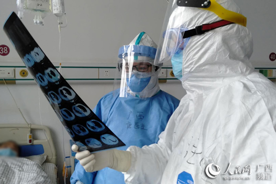 “你是劉芳,你是韓主任,我聽得出你們的聲音,謝謝你們,我知道你們是廣西的,你們是過來幫助我們的,謝謝你們。”老人家轉(zhuǎn)出重癥病區(qū)時(shí)對(duì)我們說。這一刻,我的眼角濕潤了,感到無比的自豪和欣慰。收獲患者的信任、讓患者重拾信心就是對(duì)我們最大的褒獎(jiǎng)。