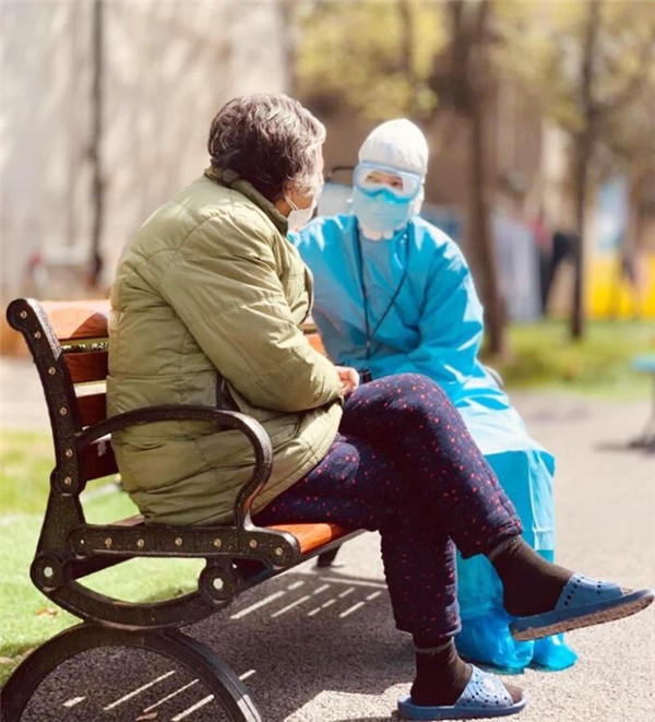 8艙有一位80多歲的老奶奶,中午出來遛彎時看到了醫(yī)療隊護士萬珍妮,主動過來攀談。“你是陜西來的?我看你衣服上寫著西安幾個字了。”“是啊,奶奶,我們是西安國際醫(yī)學(xué)中心醫(yī)院來武漢支援的。”萬珍妮通過和奶奶聊天得知,奶奶的父親以前在寶雞工作過很長時間。“我也算半個陜西人了。沒想到在這里還能見到“老鄉(xiāng)”!感謝你們!”奶奶感覺很親切,和萬珍妮話起了“家常”。