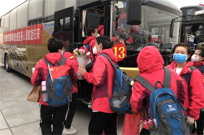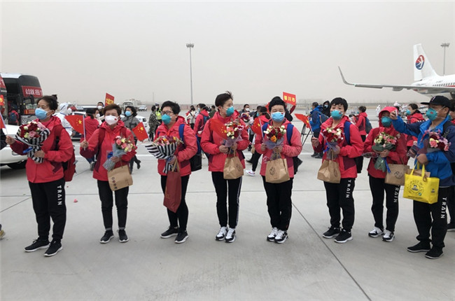 今天下午,載有寧夏第五批、第六批援湖北醫(yī)療隊(duì)隊(duì)員的包機(jī)降落在銀川河?xùn)|國(guó)際機(jī)場(chǎng)。今日撤離隊(duì)伍共有323人返回,其中320人乘機(jī)返回,3人駕駛緊急救援車(chē)返回?;貙幒螅麽t(yī)療隊(duì)醫(yī)務(wù)人員將分別由五市接回,在指定酒店接受14天醫(yī)學(xué)隔離。據(jù)了解,疫情以來(lái),寧夏陸續(xù)派出六批援湖北醫(yī)療隊(duì)隊(duì)員共計(jì)785人,目前仍有8名疾控中心流調(diào)人員繼續(xù)在武漢、潛江支援。