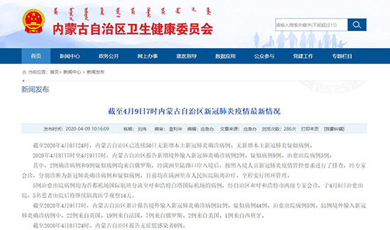 2020年4月8日7時至4月9日7時,內蒙古自治區(qū)報告新增境外輸入新冠肺炎確診病例2例、疑似病例9例、治愈出院病例5例。