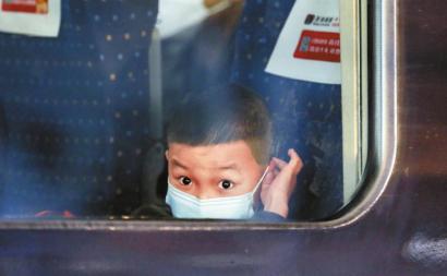 4月8日,在武漢站,一名小乘客從G431次列車(chē)上向窗外張望。新華社記者 沈伯韓 攝