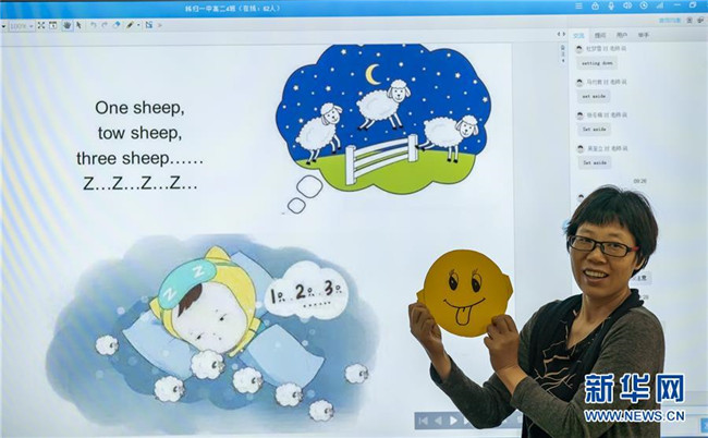 5月8日,在湖北省宜昌市秭歸縣第一中學(xué),老師在上網(wǎng)課前手拿自制的笑臉卡與學(xué)生互動。 當(dāng)日是世界微笑日。 新華社發(fā)(向紅梅 攝)