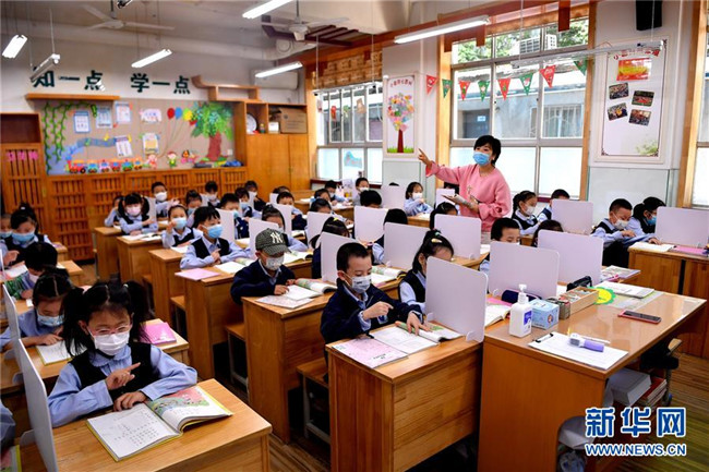 5月11日,陜西省西安市新城區(qū)后宰門小學(xué)一年級(jí)的學(xué)生在上課。新華社記者 劉瀟 攝