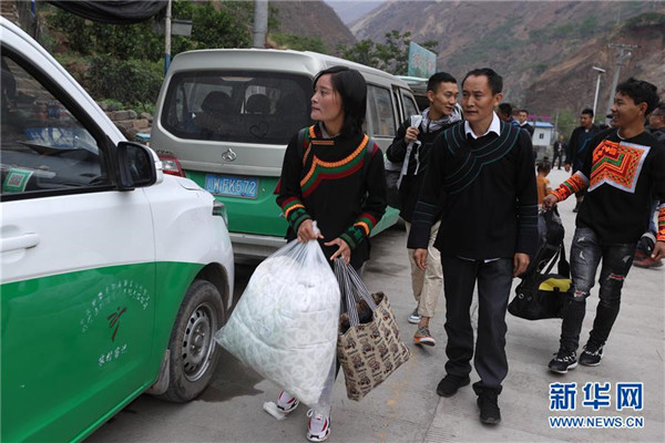 5月12日,四川省昭覺縣阿土列爾村第一批26戶貧困戶帶著家什陸續(xù)下山準(zhǔn)備搬新家。新華社記者江宏景攝