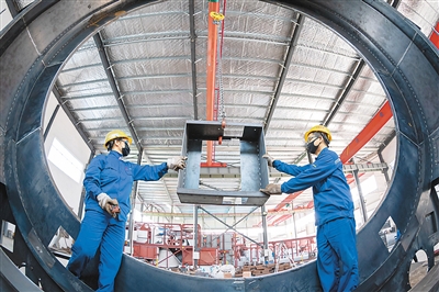 今年以來,江蘇省海安市在科學防控疫情的同時,及時為企業(yè)解難紓困,幫助民營企業(yè)迅速恢復產(chǎn)能、拓展國內(nèi)外市場,保持經(jīng)濟平穩(wěn)運行,確保務工人員有崗上、有活干、有錢賺。圖為5月17日,在海安市白甸鎮(zhèn)一企業(yè)車間內(nèi),工人在趕制建材裝備訂單。翟慧勇攝(人民視覺)