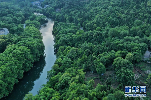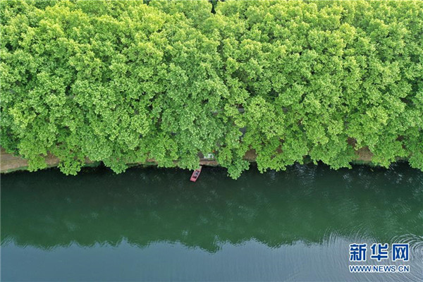 這是5月19日拍攝的貴陽市花溪國家城市濕地公園黃金大道(無人機(jī)照片)。近日,貴州省貴陽市花溪國家城市濕地公園黃金大道綠意盎然,美景如畫。新華社記者歐東衢攝