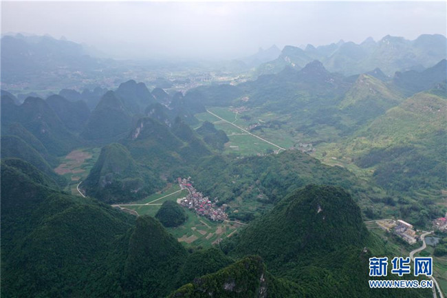 這是廣西環(huán)江毛南族自治縣下南鄉(xiāng)中南村南昌屯民居(5月13日攝,無人機照片)。