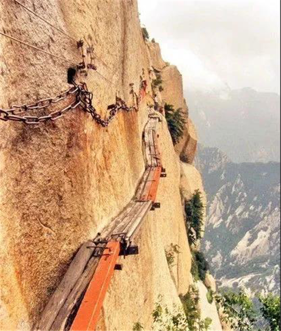 世界十大險道之一,有700余年的歷史,是華山派第一代宗師元代高道賀志真為遠(yuǎn)離塵世靜修成仙,在萬仞絕壁上鑲嵌石釘搭木椽而筑。是華山的險中之險。古往今來,歷險探勝者絡(luò)繹不絕。