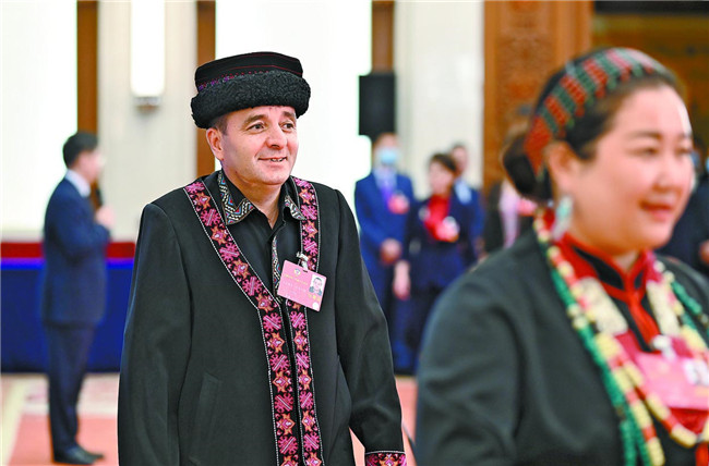 5月24日,全國(guó)政協(xié)十三屆三次會(huì)議第二場(chǎng)“委員通道”采訪活動(dòng)舉行。這是全國(guó)政協(xié)委員玉克賽克·西加艾提接受完采訪離開(kāi)“委員通道”。 新華社記者 劉金海攝