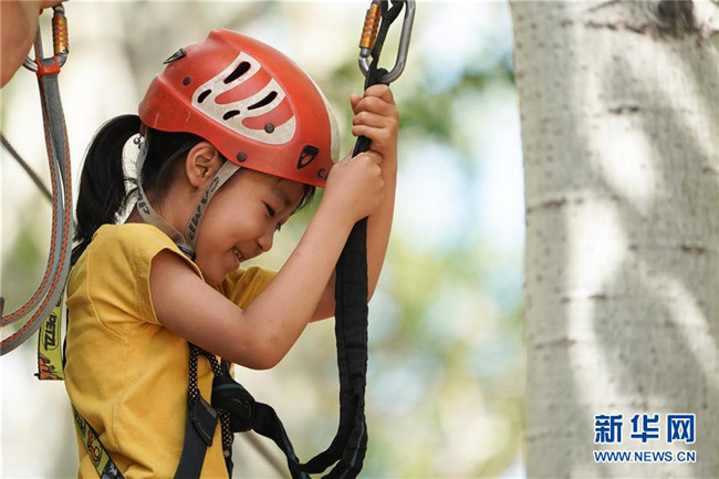 5月31日,小朋友在北京朝陽公園體驗戶外運(yùn)動。新華社記者 鞠煥宗 攝