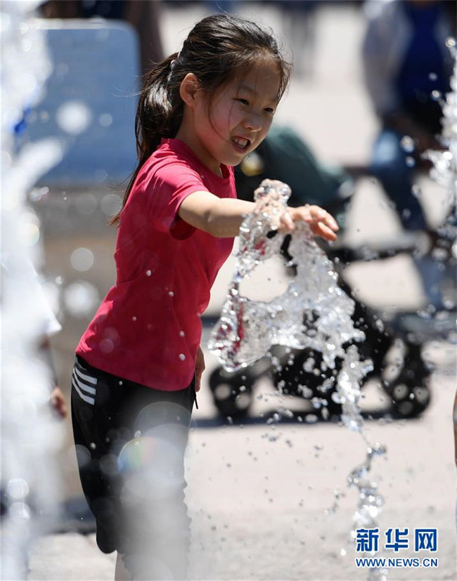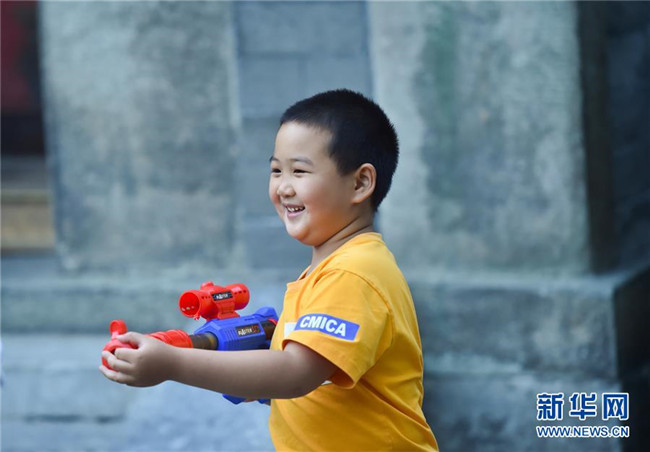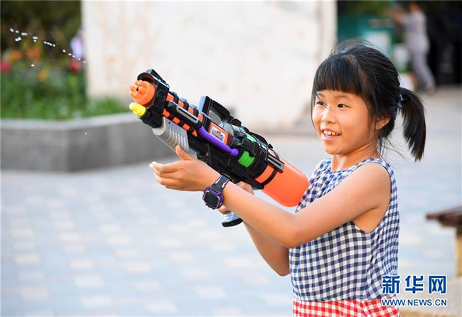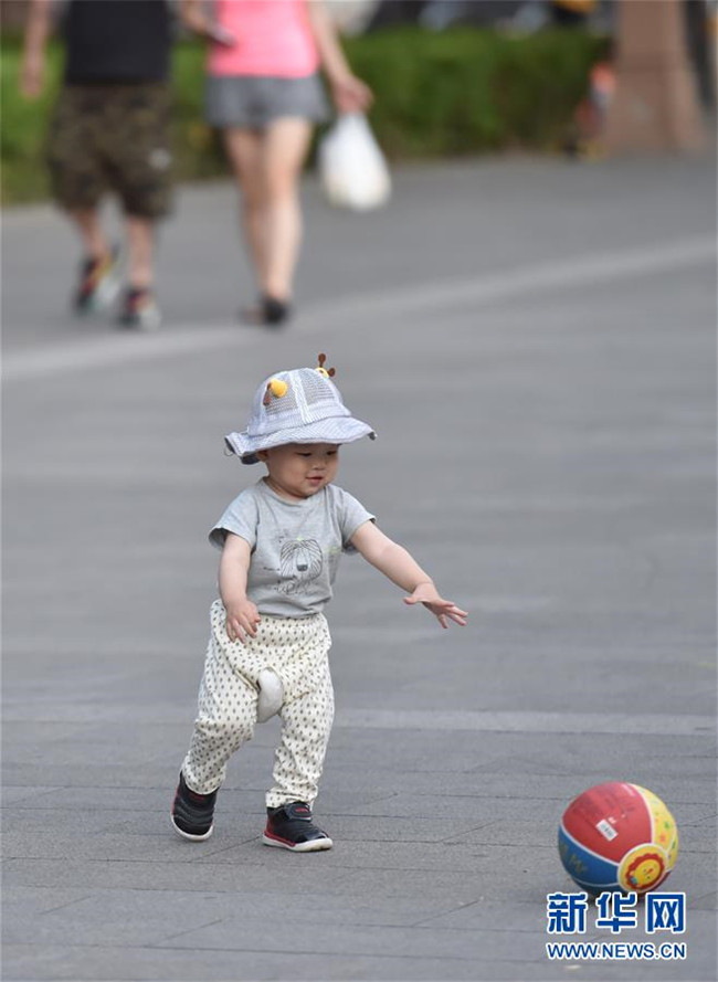5月31日,小朋友在北京鐘鼓樓文化廣場玩耍。新華社發(fā)(陳鐘昊攝)