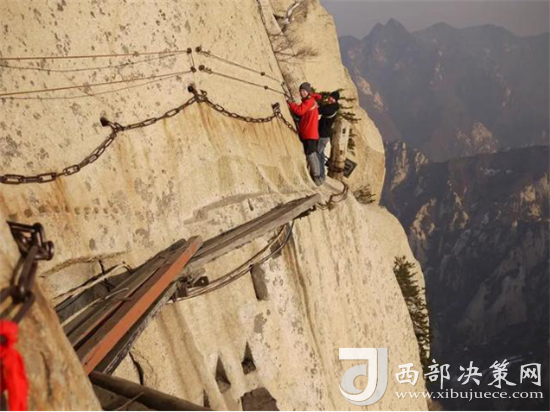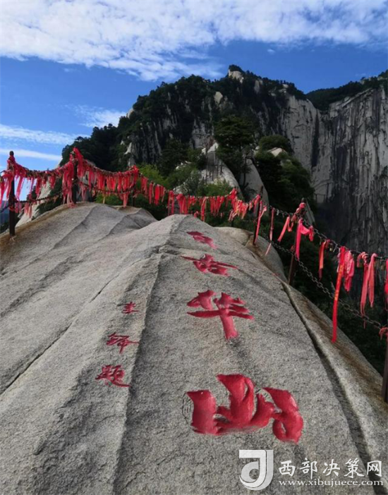 眾所周知 “自古華山一條路”是一道奇觀。這條道路或越澗跨溪,或臨崖盤山,或入崖間深谷,或走峭壁嶺脊,或平坦或曲陡,或?qū)挸ɑ颡M窄,曲折變化,跌宕起伏,把人帶入意境深邃的萬般景象之中。道路兩旁遍布的摩崖石刻,使人仿佛走進(jìn)一個(gè)書法藝術(shù)的走廊。一步一景一傳說,更使華山沿途披上了濃厚的文化色彩。