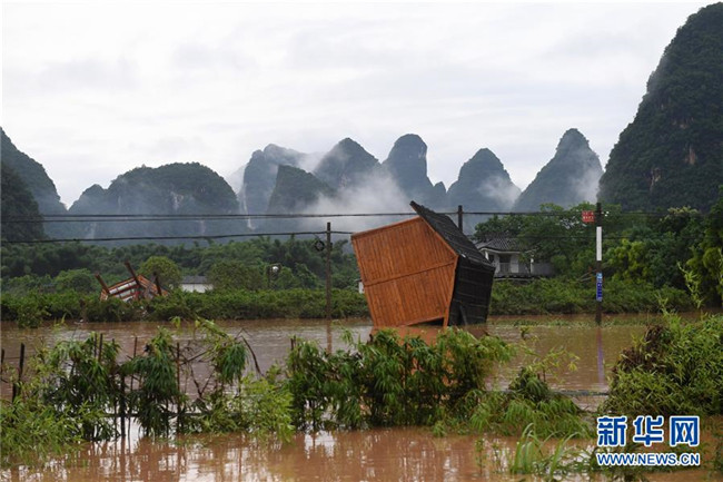 這是廣西陽(yáng)朔縣被洪水沖毀的旅游設(shè)施(6月7日攝)。新華社記者 陸波岸 攝