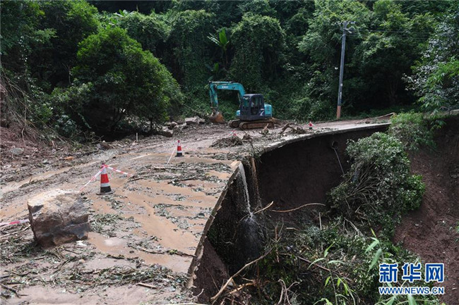 這是廣西陽(yáng)朔縣普益鄉(xiāng)境內(nèi)的一處滑坡?lián)p毀道路(6月11日攝)。新華社記者 陸波岸 攝