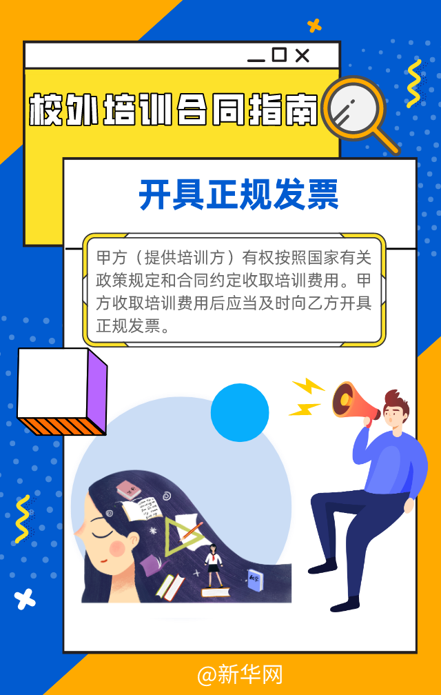 長(zhǎng)期以來(lái),校外培訓(xùn)機(jī)構(gòu)的資質(zhì)問(wèn)題,以及部分培訓(xùn)機(jī)構(gòu)存在違規(guī)收費(fèi)、退費(fèi)難、卷款“跑路”現(xiàn)象,這些令學(xué)生和家長(zhǎng)發(fā)愁。教育部、市場(chǎng)監(jiān)管總局近日發(fā)布《中小學(xué)生校外培訓(xùn)服務(wù)合同(示范文本)》,供培訓(xùn)者(學(xué)員)監(jiān)護(hù)人與開(kāi)展中小學(xué)生校外培訓(xùn)的培訓(xùn)機(jī)構(gòu)簽訂培訓(xùn)合同時(shí)參照使用,為規(guī)范校外培訓(xùn)做出新的探索。一起來(lái)看看,這份“國(guó)家版”標(biāo)準(zhǔn)合同有哪些亮點(diǎn)?