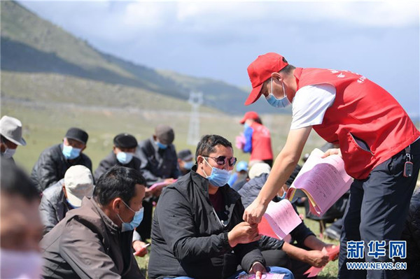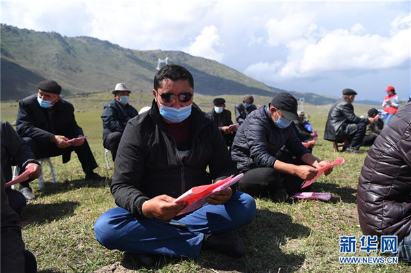 6月20日,在布爾津縣阿貢蓋提草原,牧民在看布爾津縣也格孜托別鄉(xiāng)克孜勒托蓋村家庭醫(yī)生簽約團隊發(fā)放的宣傳材料。圍繞實現(xiàn)人人享有基本醫(yī)療衛(wèi)生服務(wù)目標,2016年起,新疆布爾津縣開展家庭醫(yī)生簽約服務(wù)工作。該縣組建家庭醫(yī)生簽約團隊65個,團隊醫(yī)務(wù)人員233名,通過手機APP、基本公衛(wèi)系統(tǒng)與全縣建檔立卡貧困戶進行電子化簽約,提升村醫(yī)隨訪的工作效率和質(zhì)量。截至目前,已完成簽約42936人,履約40043人。新華社記者沙達提攝