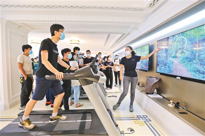 6月24日,華為上海南京東路旗艦店正式開業(yè)。該店一樓是產(chǎn)品體驗區(qū),二樓為全場景體驗區(qū),分為智能家居、移動辦公、運動健康、智慧出行、影音娛樂等五大場景。該店還為消費者提供全場景沉浸式互動體驗。圖為市民在該店內(nèi)體驗智能運動產(chǎn)品。王 初攝(人民視覺)