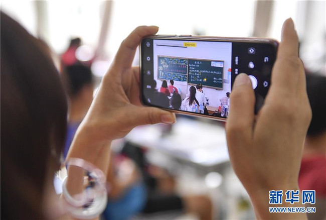 7月6日,吉林省孤兒學校高三年級班主任吳東輝用手機拍攝學生們寫給她的“請假條”。 新華社記者 許暢 攝