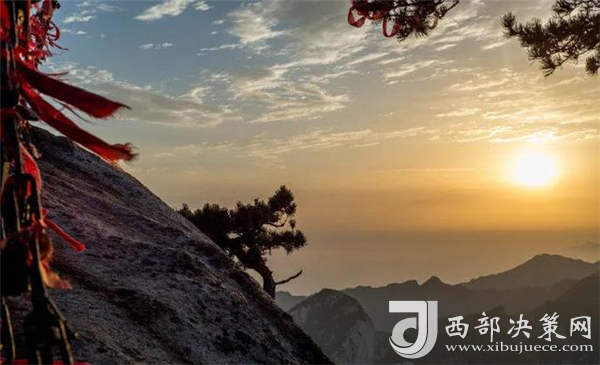 是時,但見夜幕自東方悄然隱退,晨曦初露,漸漸霞光瑰麗,云源奔涌。瞬間,一輪火球噴薄而出,繼而光芒四射,氣象萬千,整個世界大放光明,游人身心為之一振。待云霧散盡,蒼松翠柏,則更加清麗悅目,美妙神奇。故而,游名山者必登華山,登華山者必觀日。華山日出亦被列為華山自然風(fēng)光中的重要景觀之一。