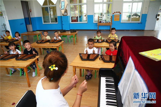 7月22日,學(xué)生在石嘴山市大武口區(qū)青少年學(xué)生校外活動中心音樂教室內(nèi)學(xué)習(xí)鐘琴。新華社記者 賈浩成 攝