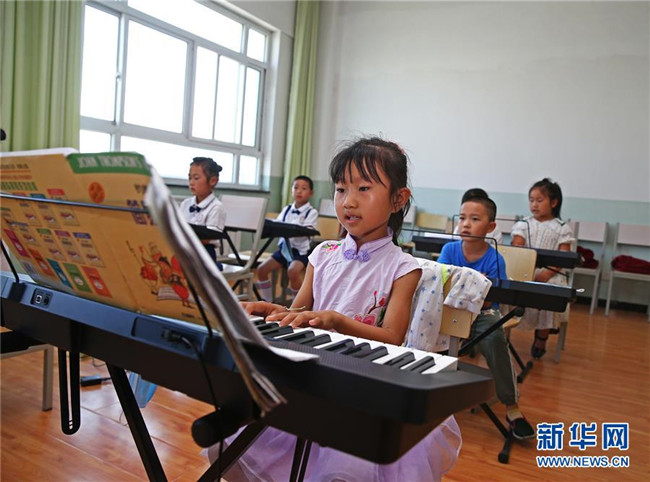 7月22日,學(xué)生在石嘴山市大武口區(qū)青少年學(xué)生校外活動中心音樂教室內(nèi)練習(xí)電子琴。新華社記者 賈浩成 攝