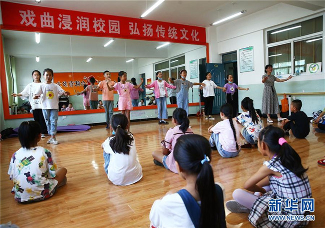 7月22日,學(xué)生在石嘴山市大武口區(qū)青少年學(xué)生校外活動中心教室內(nèi)學(xué)習(xí)秦腔。新華社記者 賈浩成 攝