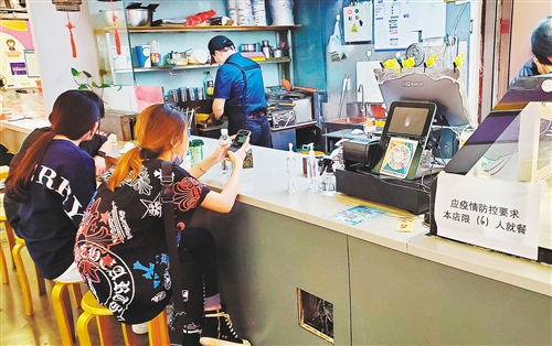 “今年受疫情影響,到店堂食客人比往常少了很多,但門店始終堅持營業(yè)。”藍(lán)蛙中關(guān)村店工作人員艾米告訴記者,該店疫情前每到飯點基本都會客滿,滿座時能容納200多人同時就餐,排隊等位的也不少,現(xiàn)在由于疫情防控要求嚴(yán)格,加上隔座就餐,店里最忙時也就二三十位客人。