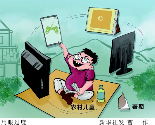 記者走訪(fǎng)發(fā)現(xiàn),暑期用眼過(guò)度的現(xiàn)象在不少農(nóng)村兒童中存在。有孩子跟著電視臺(tái)追劇,一看就是一整天;有家長(zhǎng)晨起上廁所,竟發(fā)現(xiàn)孩子“刷了一夜手機(jī)”;一位媽媽“吐槽”說(shuō),為了讓孩子少看電子產(chǎn)品,每天都要“斗智斗勇”:改密碼、藏充電線(xiàn)、沒(méi)收手機(jī)……