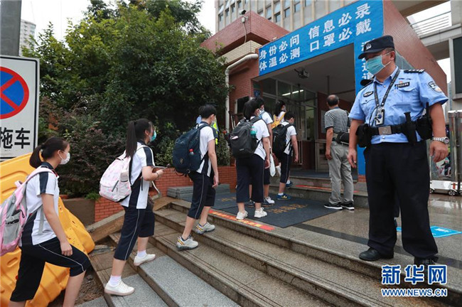 當(dāng)日,武漢初中階段初一、初二年級(jí)返校復(fù)學(xué),至8月30日結(jié)束。 新華社發(fā)(趙軍 攝)