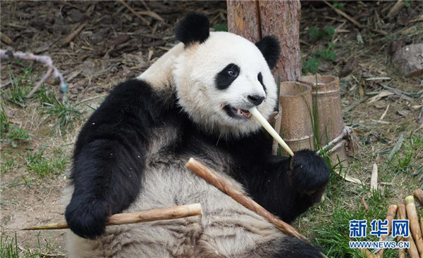 8月16日,大熊貓“園滿”在西寧熊貓館內(nèi)吃竹子。青海省西寧熊貓館的四只大熊貓已經(jīng)在西寧生活了一年多,在工作人員的悉心照顧下,已經(jīng)適應(yīng)了青藏高原的氣候,身體各項指標(biāo)正常。新華社記者耿輝凰攝