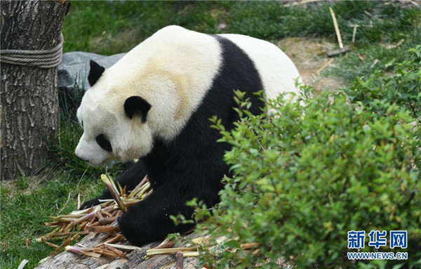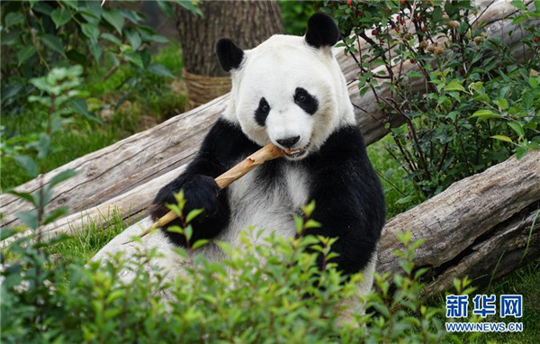 8月16日,大熊貓“雙欣”在西寧熊貓館內(nèi)吃竹子。青海省西寧熊貓館的四只大熊貓已經(jīng)在西寧生活了一年多,在工作人員的悉心照顧下,已經(jīng)適應(yīng)了青藏高原的氣候,身體各項指標(biāo)正常。新華社記者耿輝凰攝