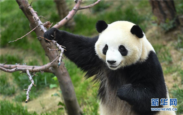 8月16日,大熊貓“園滿”在西寧熊貓館內(nèi)玩耍。青海省西寧熊貓館的四只大熊貓已經(jīng)在西寧生活了一年多,在工作人員的悉心照顧下,已經(jīng)適應(yīng)了青藏高原的氣候,身體各項指標(biāo)正常。新華社記者薛玉斌攝
