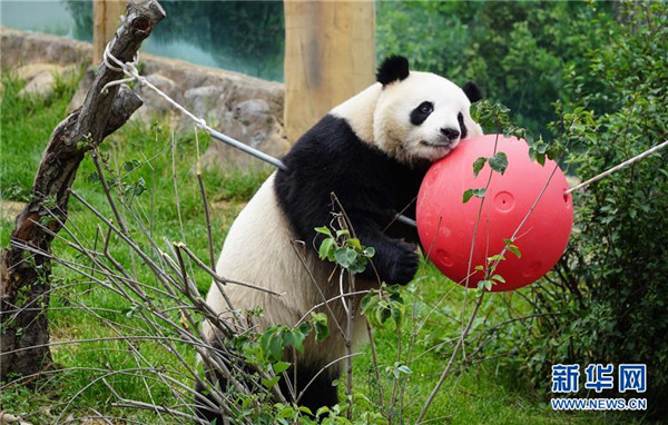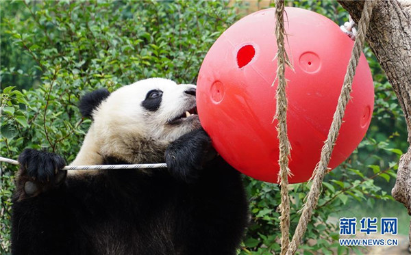 8月16日,大熊貓“奇果”在西寧熊貓館內(nèi)玩耍。青海省西寧熊貓館的四只大熊貓已經(jīng)在西寧生活了一年多,在工作人員的悉心照顧下,已經(jīng)適應(yīng)了青藏高原的氣候,身體各項指標(biāo)正常。新華社記者耿輝凰攝
