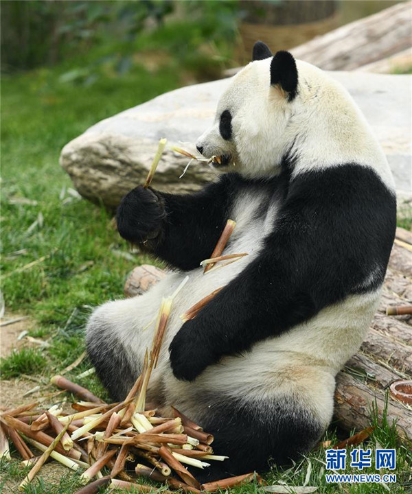 8月16日,大熊貓“和興”在西寧熊貓館內(nèi)吃竹子。青海省西寧熊貓館的四只大熊貓已經(jīng)在西寧生活了一年多,在工作人員的悉心照顧下,已經(jīng)適應(yīng)了青藏高原的氣候,身體各項指標(biāo)正常。新華社記者薛玉斌攝