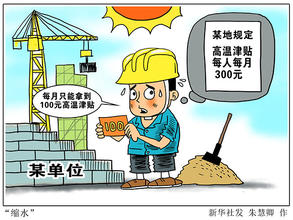 按照江蘇的規(guī)定,高溫津貼為每人每月300元,從6月起發(fā)放到9月。江蘇某園林公司員工鄭先生6月初一入職就被安排到小區(qū)項目工地上監(jiān)督施工,“人事經理說每月只能拿到100元高溫津貼,剛入職也不好去爭取。”