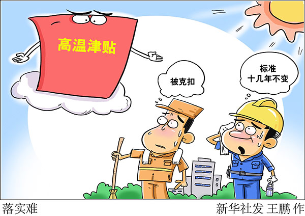 記者發(fā)現,自防暑降溫措施管理辦法2012年印發(fā)以來,各地都制定了高溫津貼標準,發(fā)放有了政策保障。但一些地區(qū)標準多年不變,一些地方標準過于復雜,有的還按實際溫度區(qū)別發(fā)放,影響具體的執(zhí)行操作。