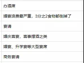 在調查問卷的后臺留言中,不少受訪者留言說,同學會、紅白宴、生日宴、升學宴、商務宴請等浪費量較高,甚至有人說“三分之二的食物都倒掉了”。