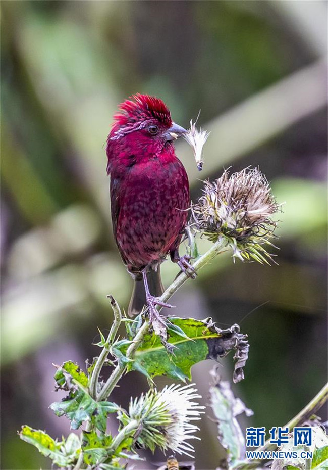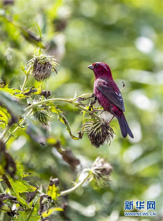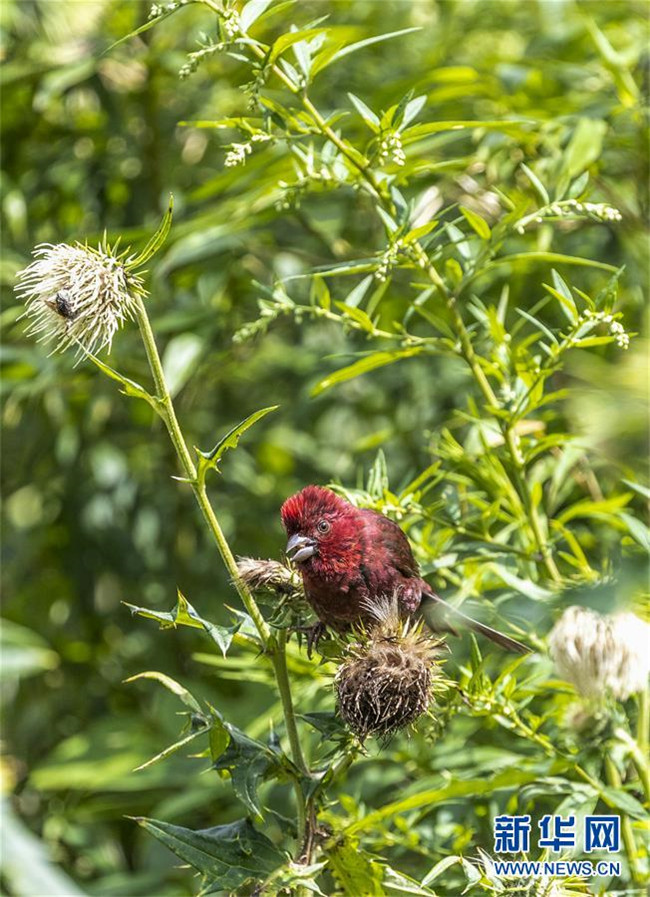 8月23日在金佛山自然保護區(qū)拍攝的酒紅朱雀。 每年7月至9月,活躍于重慶市南川區(qū)金佛山上的酒紅朱雀是當?shù)匾坏懒聋惖娘L(fēng)景。 新華社發(fā)(瞿明斌 攝)