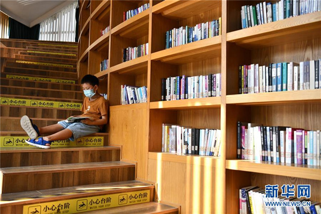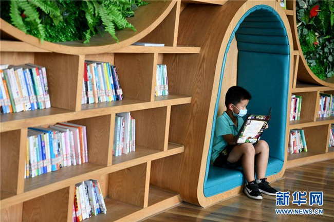 8月24日,小朋友在合肥市廬陽區(qū)悅書房·杏花書院里閱讀。新華社記者劉軍喜攝