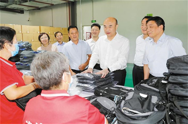 9月2日,省委書記劉國中到咸陽市、銅川市調(diào)研脫貧攻堅(jiān)。圖為他在銅川市印臺(tái)區(qū)順金社區(qū)詢問社區(qū)工廠貧困戶收入情況。記者 張辰攝