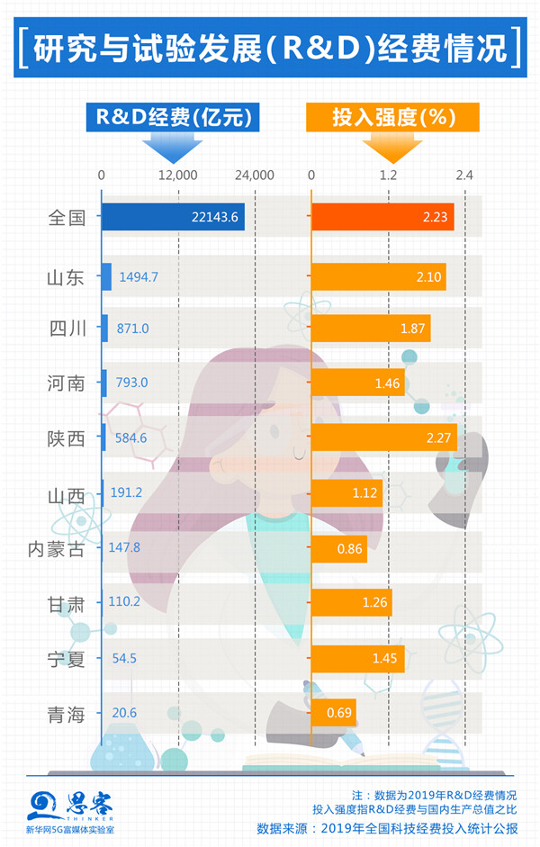 同東部沿海地區(qū)、南方省份相比,黃河流域創(chuàng)新競爭壓力巨大,創(chuàng)新要素“孔雀東南飛”的趨勢嚴峻。2019年,九省區(qū)內(nèi)只有陜西的R&D經(jīng)費投入強度高于全國平均水平。高端人才、技術(shù)勞動力、產(chǎn)業(yè)資本等關(guān)鍵要素外流態(tài)勢仍在持續(xù),因此黃河流域在新舊動能轉(zhuǎn)換上面臨困境。