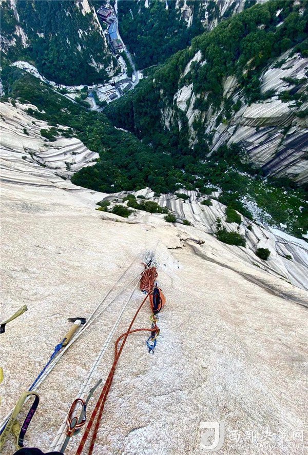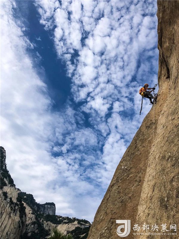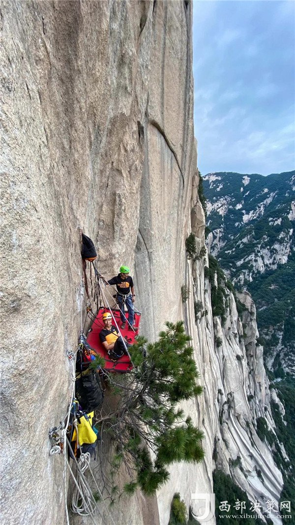 自然巖壁結組挑戰(zhàn)賽選手成功登頂。挑戰(zhàn)了華山白云峰六百多米的花崗巖大巖壁,并在巖壁上生活了兩天,不僅向大家展示了運動員的專業(yè)攀巖技術,更展示了超強的野外生存能力。