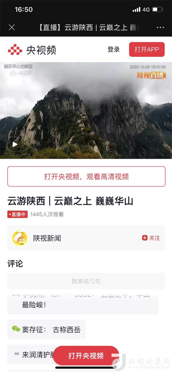 節(jié)前與央視頻手機客戶端及陜視新聞手機客戶端提前對接并測試信號,確保黃金周期間全天24小時不間斷慢直播順利進行,同時與央視、新華社、人民網(wǎng)、陜西日報、陜西電視臺、渭南日報、渭南電視臺及省內(nèi)主流網(wǎng)絡(luò)媒體聯(lián)系對接,確保黃金周期間各項工作有序推進。