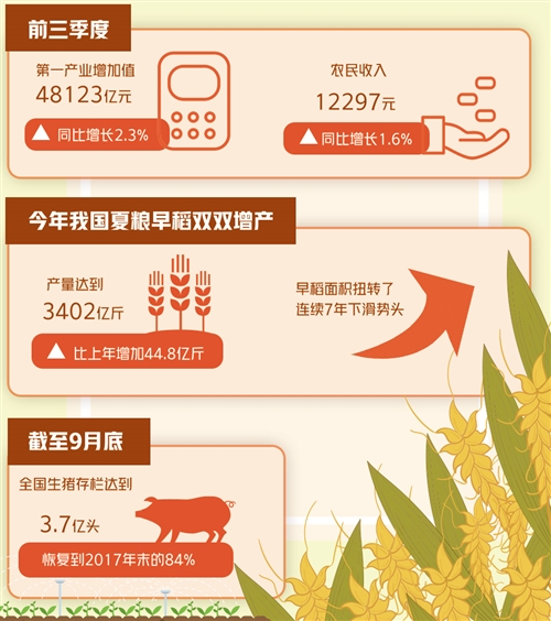 前三季度第一產(chǎn)業(yè)增加值48123億元,同比增長2.3%——