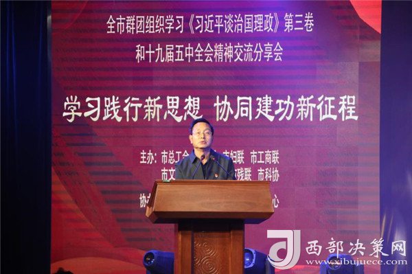 西部決策網訊 為深入貫徹習近平新時代中國特色社會主義思想,學習宣傳貫徹《習近平談治國理政》第三卷、黨的十九屆五中全會精神,加快群團協(xié)同化建設進程,11月5日,西寧市總工會牽頭召開市級群團組織“學習踐行新思想 協(xié)同建功新征程”為主題的學習《習近平談治國理政》第三卷和黨的十九屆五中全會精神交流分享會,市委常委、宣傳部部長、市總工會主席王霞出席會議并講話。全市各群團組織負責同志、勞模代表和干部職工群眾共300余人參加活動。