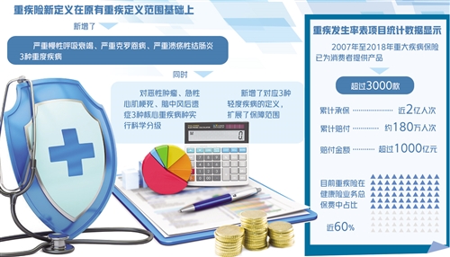 統(tǒng)計數(shù)據(jù)顯示,僅2007年至2018年期間,重疾險為消費(fèi)者提供了超過3000款產(chǎn)品,累計承保近2億人次,累計賠付約180萬人次,賠付金額超過1000億元。目前,重疾險在健康險業(yè)務(wù)總保費(fèi)中占比近60%,相關(guān)規(guī)范文件的修訂對人身保險行業(yè)發(fā)展具有深遠(yuǎn)影響。